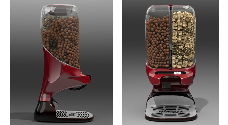 Double cereal Dispenser developed for Kellogg’s in collaboration with Surge Innovations.